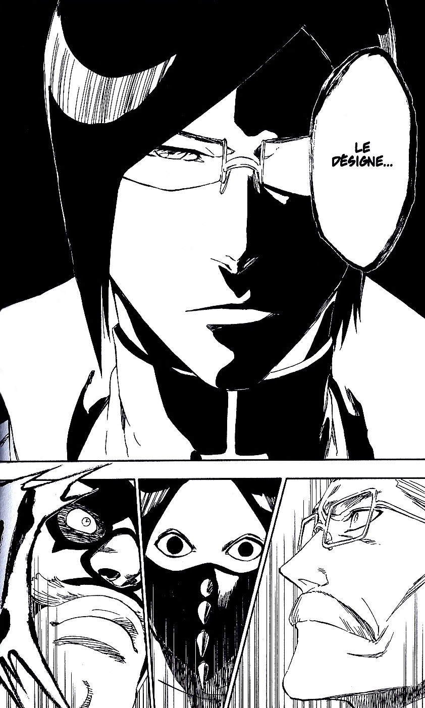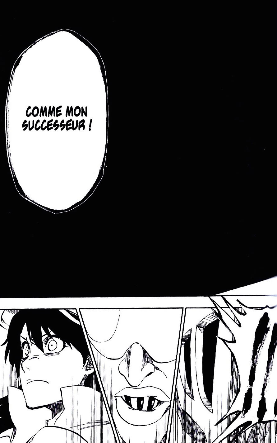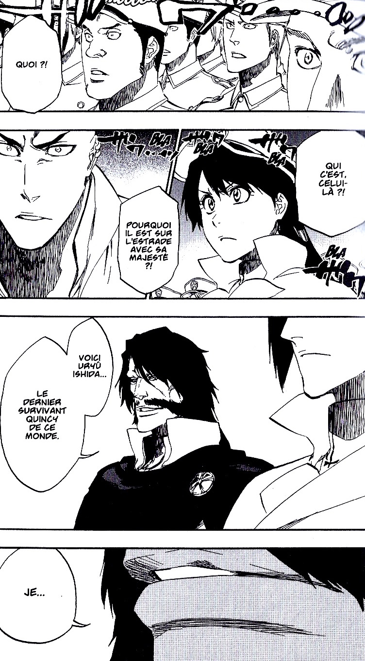 Ça ne fait aucun sens. Pourquoi Zangetsu serait-il Yhwach ? Pourquoi chercherait-il à le nuire alors que, durant toutes ces années passées à ses cotés, il n’a eu de cesse de le protéger à chaque fois que sa vie était en danger ? Pourquoi ?! Alors qu’Ichigo tente de comprendre les révélation de Zangetsu comme quoi il ne serait pas son Zanpakuto, Ishida se fait enrôler par…Yhwach en personne. Et en tant que successeur.