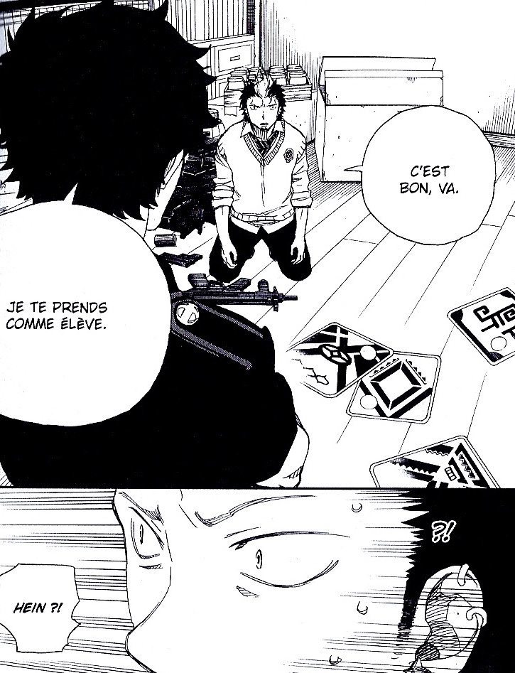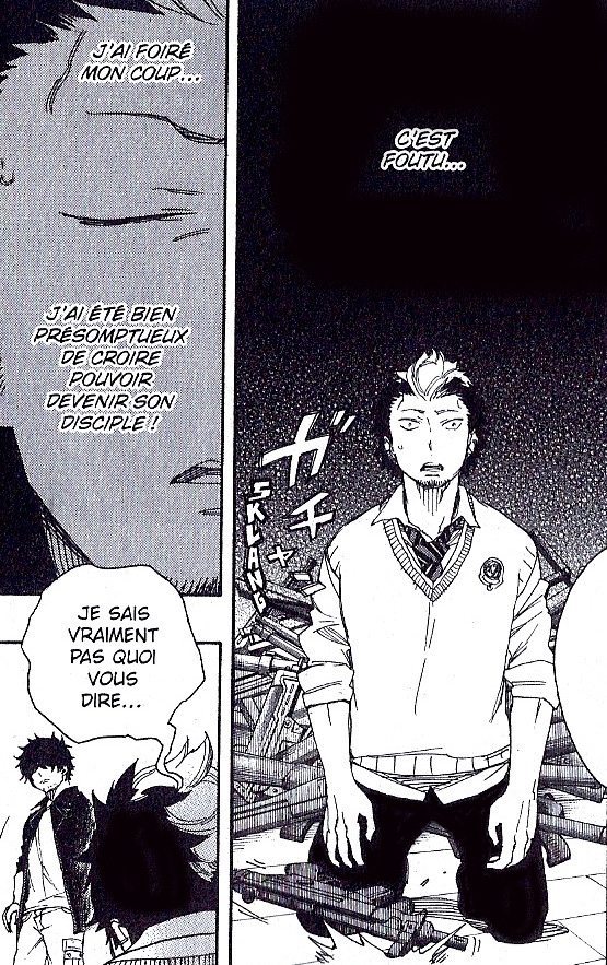 Depuis sa rencontre avec Lucifer, Yukio est de plus en plus angoissé par la nature démoniaque qui sommeille en lui. Ces « flammes » qui, à l’instar de son grand frère Rin, seraient liées à une douce démoniaque. Pour autant, à qui se confier ? Lui qui a toujours détesté dévoiler ses faiblesses. Certainement pas à l’Académie de la Croix-Vraie qui, si elle l’apprenait, ordonnerait son arrestation sur le champ en vue de le soumettre à allez-savoir quelles sinistres expériences. « Non, il faut que j’apprenne à dompter cette puissance tout seul et sans l’aide de personne ! ». Oui, Yukio s’est toujours mieux débrouillé seul.