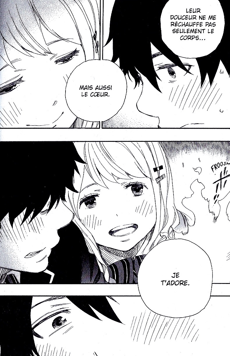 Sans compter l’univers que l’auteur s’attache à préciser de manière particulièrement convaincante : qu’il s’agisse du système scolaire de l’Académie ou du fonctionnement interne des institutions majeures telles que l’Ordre des Chevaliers de la Croix-Vraie. Certes, le rythme est lent et Kazue n’hésite pas à dédier des tomes entiers à des phases de transition. Pour autant, il ne s’agit pas de gagner du temps en enchainant les chapitres H.S mais plutôt de nous faire entrer dans l’intimité de nos héros. L’affect est un facteur essentiel dans un manga et l’un des gros points forts de Blue Exorcist.