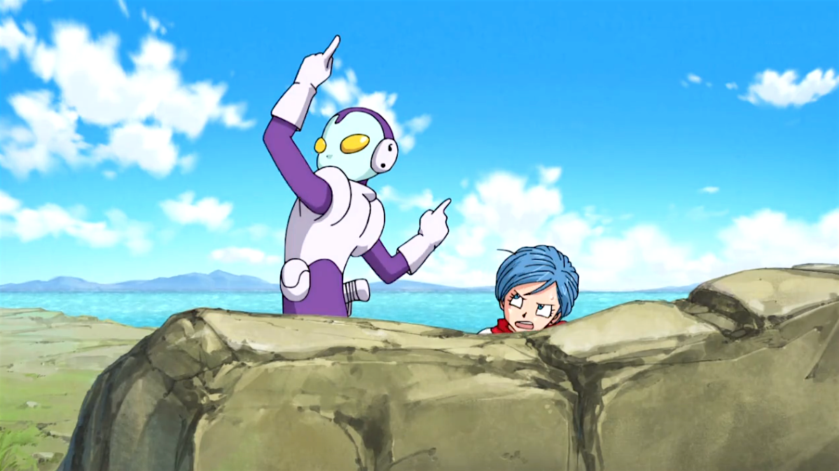 Gotens et Trunks qui ne sont pas foutus de prendre en compte la durée d’expiration de leur fusion avant de faire les fanfarons <_< Pas un pour rattraper l’autre ! Et Freezer qui a le seum parce que les Saiyen ken comme des lapins xD Anyway, très sympathique le cliff avec le commandant Ginyu qui, coincé dans un corps de batracien depuis l’arc Freezer, errait sans but sur la planète Terre depuis tout ce temps (╹o╹) Il était temps qu’il possède autre corps…à savoir celui de Tagoma (⌐■_■)