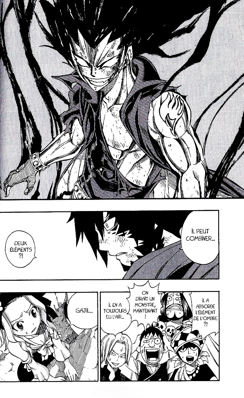 C’est l’instant de vérité : au bout de leur force, nos héros n’ont d’autre choix que de gagner. Telle est la prédiction de Mavis…et il est hors de question de décevoir le 1er chef de Fairy Tail. Cela-dit, la situation reste compliquée. Gajeel doit composer avec l’ombre de Rog, Erza a épuisé toutes ses ressources et doit affronter la redoutable Minerva, Grey/Jubia sont en difficulté face à Cherrya et Leon… Quant à Luxus, celui-ci doit composer avec Jera, l’un des plus puissants mages sacrés.