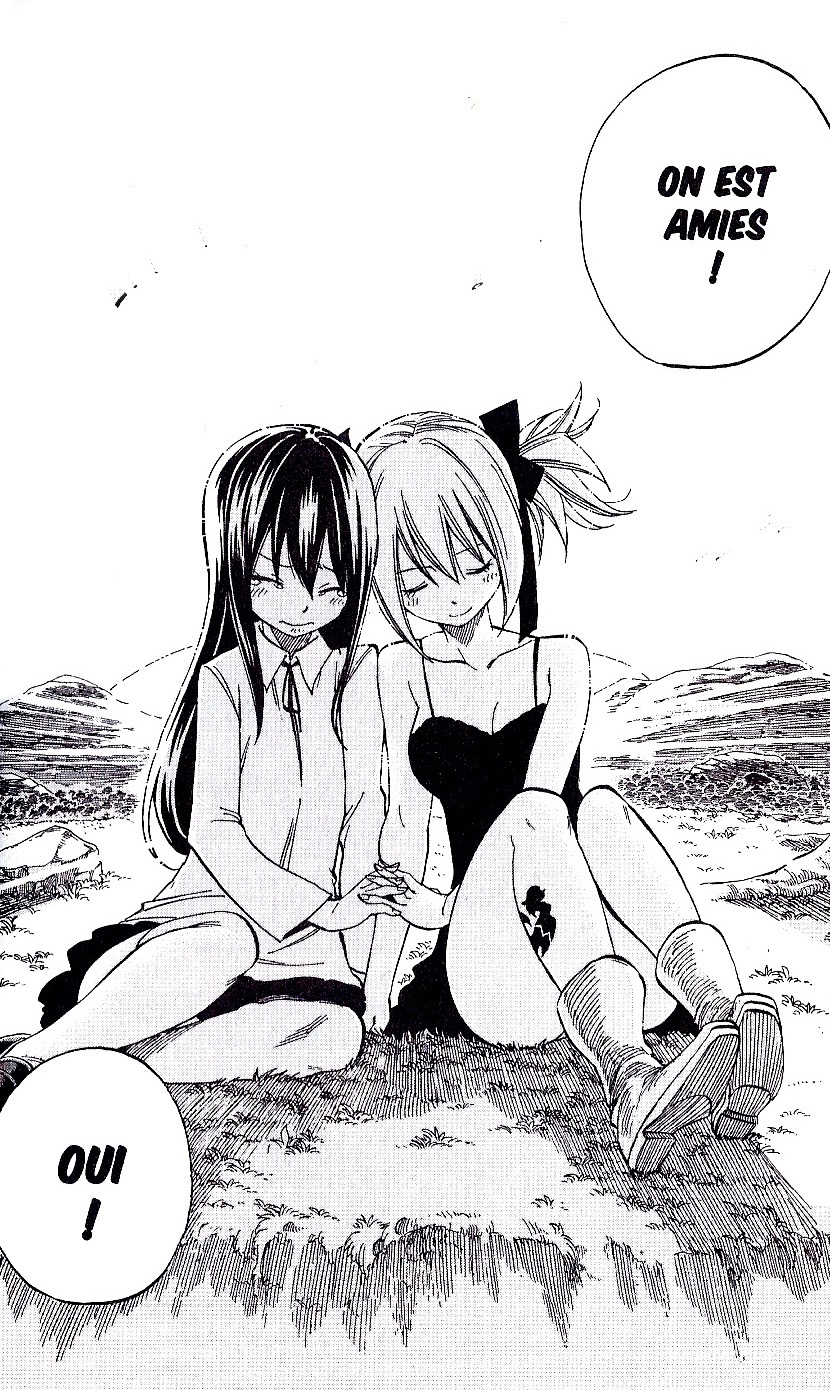 Il est temps de reconstituer la fine équipe ! Du moins tel est l’objectif de Natsu et Lucy qui, à peine arrivés chez Lamia Scale, réalisent que Wendy…ne veut pas revenir ?! /OoO/ Et bien, c’est qu’il s’en est passé des choses depuis 1 an ! Pourtant, Chelia souhaite que son amie, non, sa meilleure amie, rejoigne à nouveau sa famille. Car c’est là qu’elle a toujours appartenu. Qu’importe leurs liens qui, quoiqu’il advienne, ne se briseront jamais. « Allez idiote ! Cours les retrouver ! ».