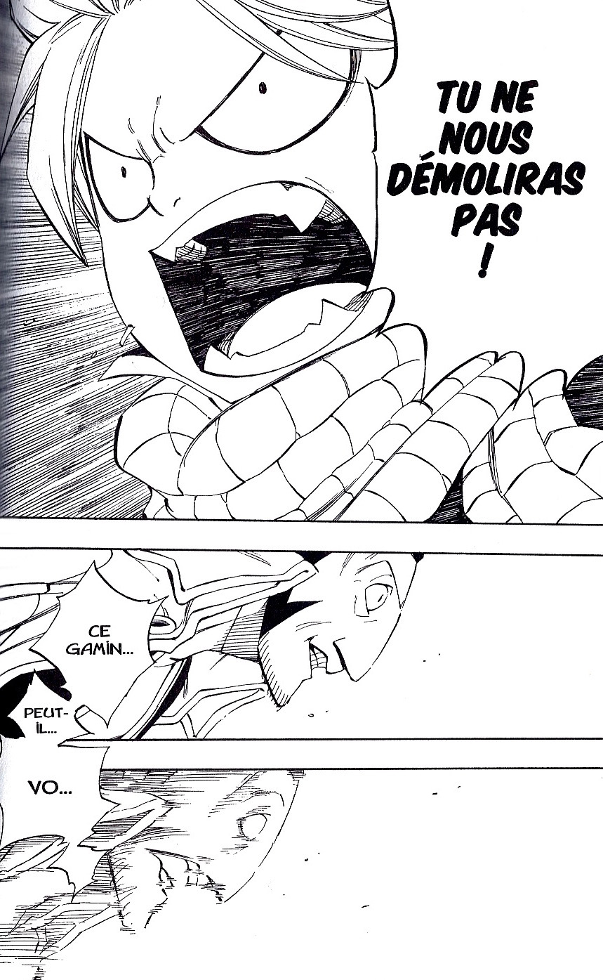 Quant à Gajeel, j’ai été étonné de voir que lui et sa petite amie Levy avaient rejoint le conseil ( ▔∀▔ ) Quid de Grey ? C’est peut-être là la plus grosse surprise puisqu’on apprend que monsieur se serait fait posséder par sa puissance démoniaque (léguée par son père feu Zéro lors de l’arc Tartaros) et entreprendrait…de servir Zeref ? -_- Mais bien sûr ! Heureusement que ce comportement de Sasuke bis est rapidement rayé de la carte par Hiro en nous dévoilant à la fin du tome qu’il ne s’agissait que d’une couverture afin d’infiltrer la guilde d’Avatar. Je crois que je n’aurais pas supporté un remake Natsu VS Grey façon Naruto VS Sasuke…