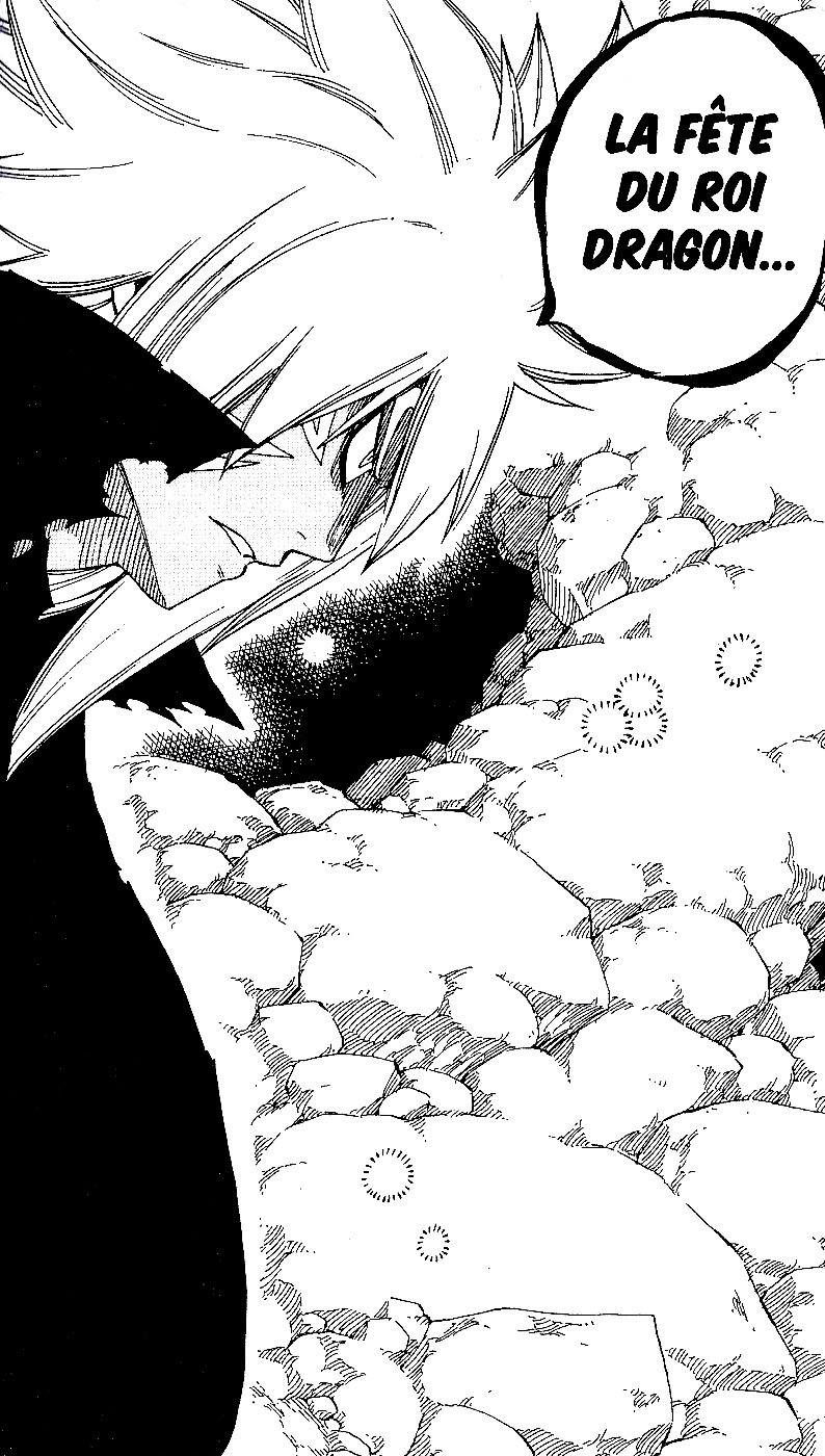 Un tome de Fairy Tail plutôt sympathique avec ce fameux flashback larmoyant entre Mavis et Zeleph ToT À savoir une histoire d’amour maudite où nos deux amants sont condamnés à ne pouvoir aimer personne —> Le sort d’Ankseram faisant en sorte que tout être aimé qui s’approcherait trop près d’eux voit son leur énergie vitale s’extraire de son enveloppe…jusqu’à la mort. C’est à cause de ce sort que la mère de Mararov (et la femme de Yûri) décède suite à son accouchement (•︵•) D’où l’exil de Makarov et le coup de foudre avec Zeleph. Un coup de foudre qui n’aura jamais aussi bien porté son nom puisqu’il agit aussitôt comme l’ultime paradoxe et précipite Mavis dans un sommeil profond –> Rappelant que nos deux tourtereaux n’ont pas le droit à l’Amour..