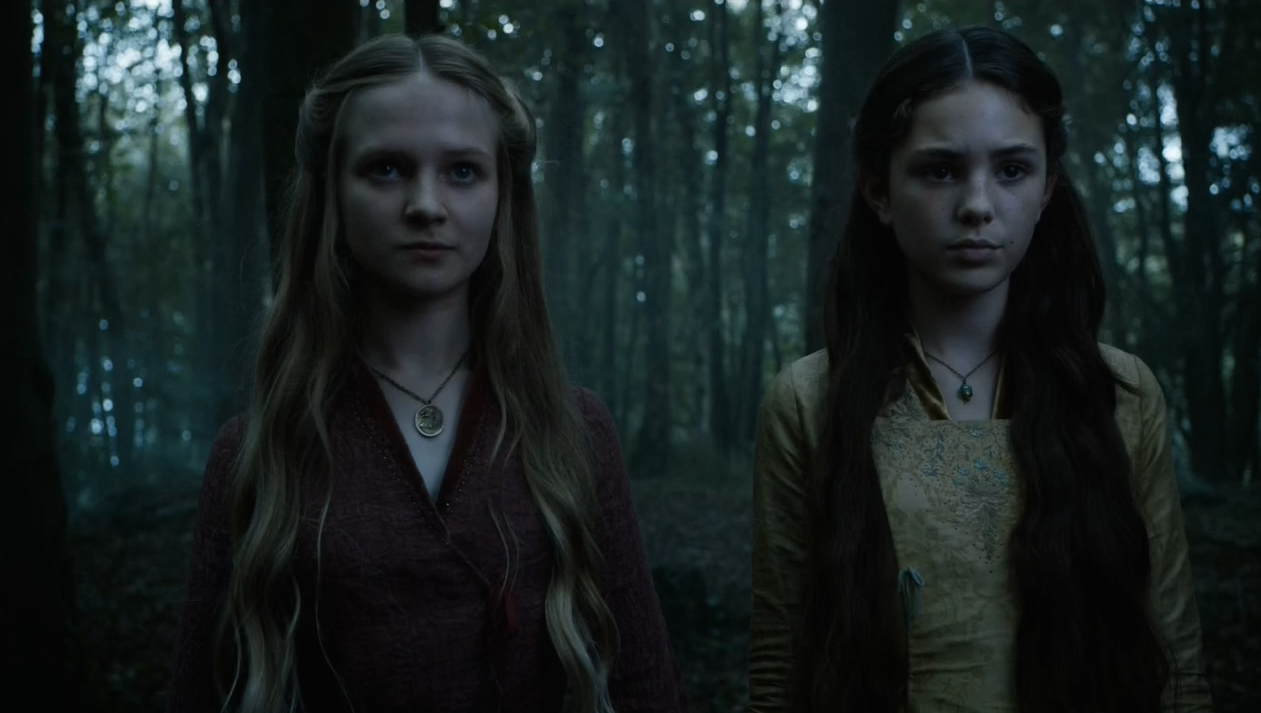 À l’orée de la forêt, là où aucun enfant n’est autorisé à vagabonder seul, deux jeunes filles se dirigent vers une hutte isolée de King’s Landing. « Nous ne devrions pas être ici » ne cesse de répéter la gamine brune. « Ne t’en fais pas » lui affirme la fille blonde, « Tu n’as pas à avoir peur de mon père d’accord » ? Et les voilà en face de cette bonne femme apparemment capable de prédire l’avenir. Mais alors que l’enfant aux cheveux d’or s’attend à se faire prédire un futur idéal aux bras du chevalier dragon, il n’en est rien. « Tu auras trois enfants qui seront, tour à tour, monarques et qui, tour à tour, périront sans que tu ne puisses rien y faire ». « Cette femme est folle » se dit Cersei. « Je n’aurais jamais dû venir ici ! ».