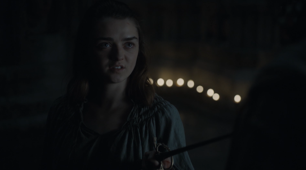 Anyway, extrêmement déçu de ne pas avoir eu raison à propos du retour de Lady Stoneheart T_T Beric Dondarrion est toujours vivant et Le Limier vient de rejoindre la Brigade des Sans-Bannières. Les meurtriers de l’épisode précédent n’étaient que des imposteurs). Autre déception (décidément) –> le combat d’Arya VS Rageuse est LUI-AUSSI passé off-screen !!!THE F*CK GoT ??? Heureusement que son discours d’adieu à Jaqen rattrape l’épisode. Tout en  accréditant à 90 % une vieille théorie —> Jaqen = Sylvio Forel ! Soit l’ancien maitre d’escrime d’Arya (╹o╹) La manière dont il lui sourit à la fin…j’en suis certain, ça ne peut être que lui ;_; Quant à l’autre théorie voulant que la Rageuse soit le coté « No One »  d’Arya, difficile de se prononcer à 100 % mais je dirais que c’était également le cas u_u Il ne manque plus qu’à l’un de mes personnages favoris de rentrer à la maison. Rentrer à Winterfell (⌐■_■)