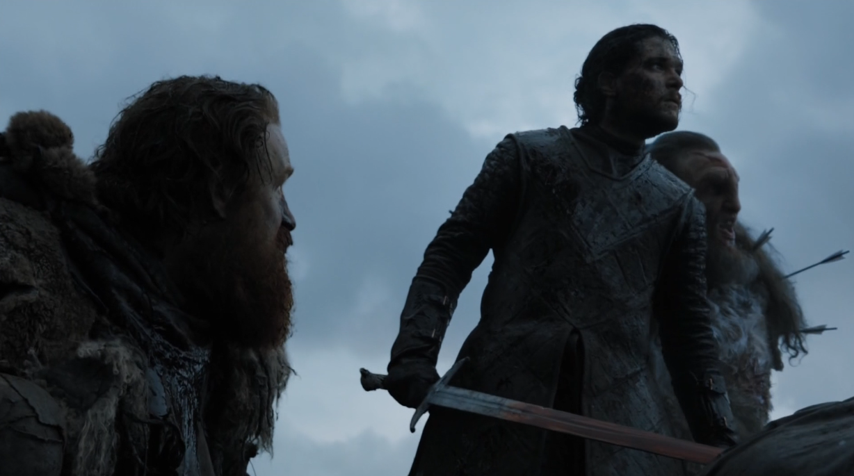 Cette reprise de Meereen par Danny et ses dragons <3 Dany qui fait alliance avec Theon et sa soeur Yara Greyjoy histoire d’avoir une flottille parée à faire cap sur Westeros (-‸ლ)Je ne m’attendais pas à une telle introduction ! Persuadé qu’on allait directement avoir le droit à la Bataille de Winterfell *_* Et ce fut une excellente mise-en-bouche ^o^ Anyway, Jon qui propose directement à Ramsay un duel en 1VS1 <3 Sansa qui lui dit qu’il va mourir demain <3 Kyaaaaa !!! Puis Tormund incapable de comprendre la moindre métaphore ou terme compliqué xD J’ai toujours aimé ces phases de tension et de préparation avant la guerre… D’autant plus lorsque celle-ci s’avère sans pitié.