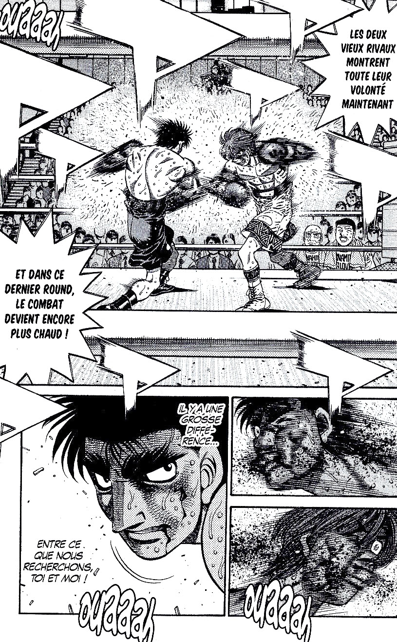 Le combat entre Itagaki et Imai fait rage. Surtout depuis que ce dernier a réalisé combien son rival avait progressé et réalisé ce qu’il fallait faire pour devenir pro. Un vrai pro. Seulement voilà, Itagaki a beau regorger de talent, Imai l’est tout autant et ne compte pas laisser la victoire lui échapper. Son objectif est de combattre et gagner contre Ippo. Itagaki n’est qu’une étape.