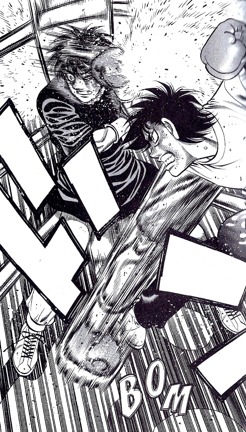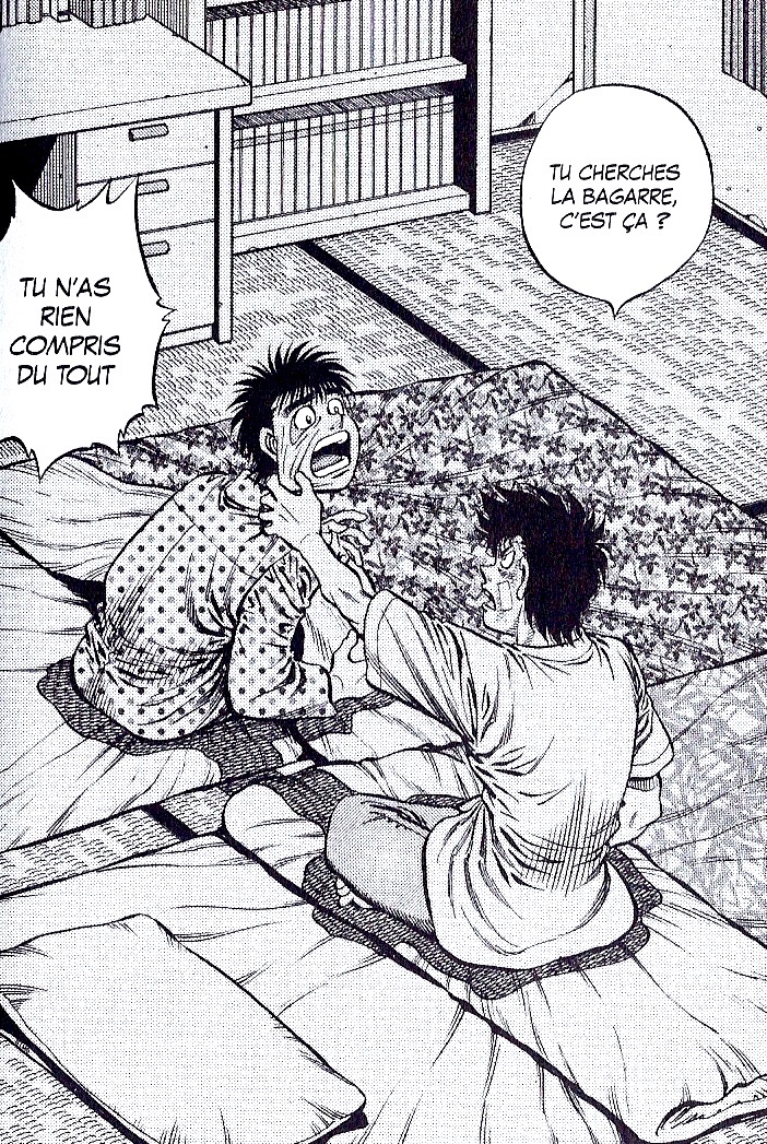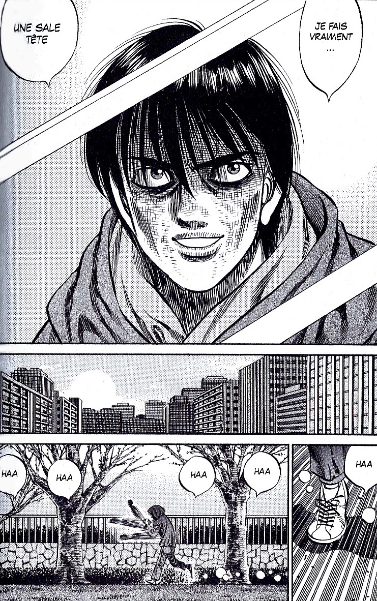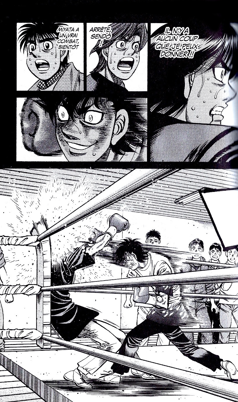 Anyway, le futur combat de Miyata fait l’objet d’un teasing particulièrement intense. J’ai même l’impression qu’il s’agit du plus long teasing que Morikawa n’ait jamais entrepris —> plus de trois tomes que l’on nous vend la future confrontation entre Ippo et Miyata O_O Autant vous dire que le combat risque de durer très longtemps. Et j’ose espérer qu’il sera bon. Contrairement au duel mou du genou entre Ippo et Malcom Gedo qui s’était BEAUCOUP trop étiré en longueur.