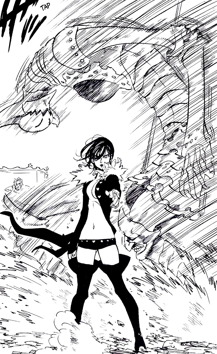 En témoigne le nombre insensée de soldats et de civils qu’il tue lors de ses attaques. Même Merlin, redoutable d’efficacité et de sens tactique, se voit dépassée par la situation. D’ailleurs, qu’est-ce qu’elle est charismatique <3 Sa rapidité à prendre les décisions qu’il faut conjugué à un sang froid imparable *o* Elle fait partie de mon top 3 de persos préférés aux cotés de Ban et Meliodas ^_^ Hawk-Sama étant hors catégorie, bien évidemment (⌐■_■) Sur ce, vivement la suite !!! D’autant plus que le cliffhanger de fin est…WOW O_O