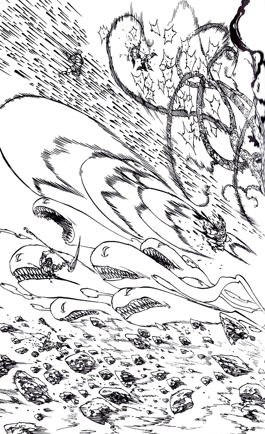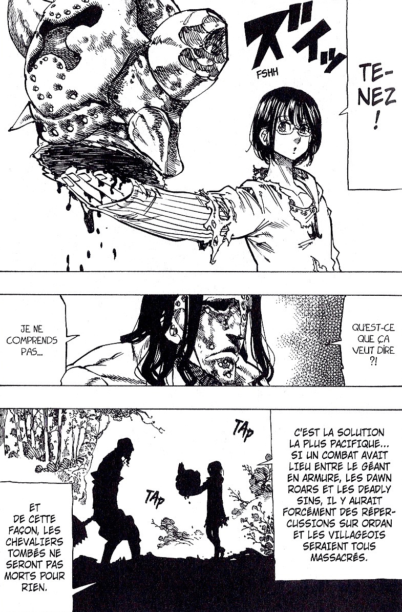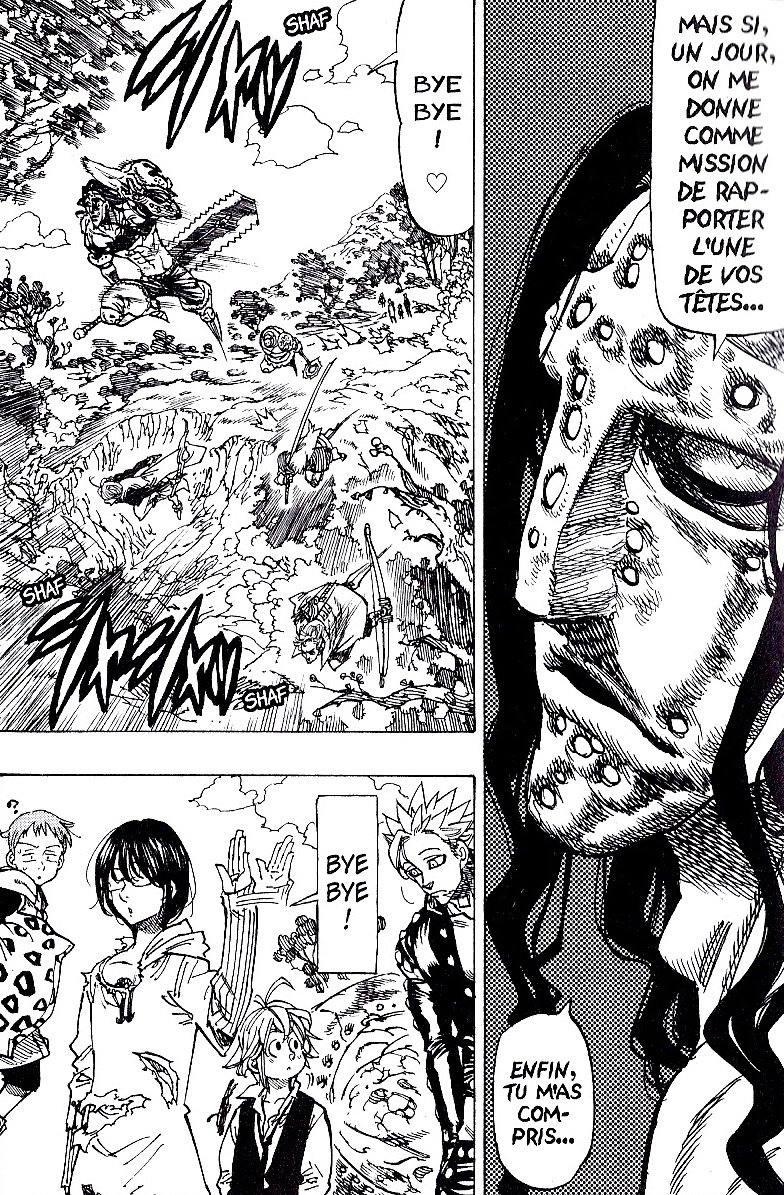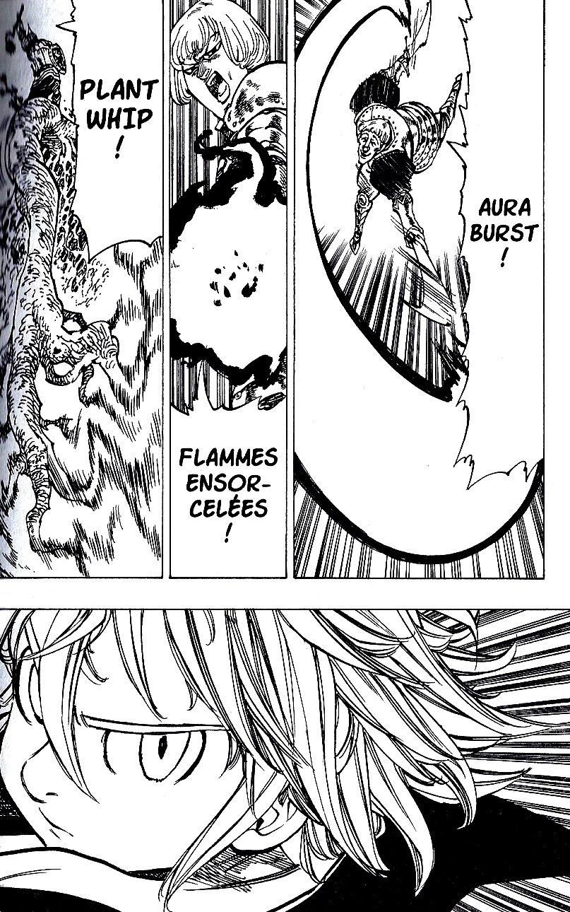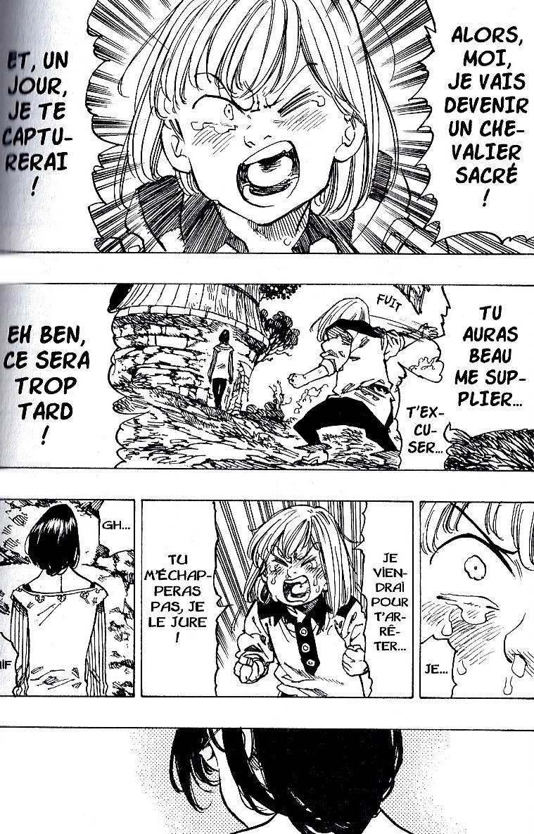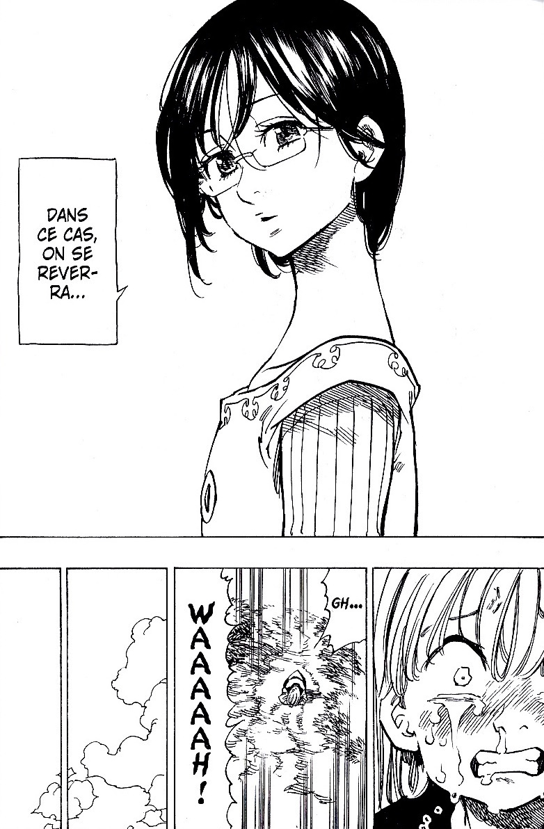 Quant à la dernière partie avec la capture d’Elizabeth (et Hawk !) + l’assaut de Melodias/Ban/Gowther sur le Royaume de Liones, nul doute qu’on s’approche d’un gros arc à venir. Pas forcément en matière de nombre de chapitres mais en termes de révélations à venir. Notamment celles entourant le vil Hendrickson ainsi que son inévitable collusion avec le général Dreyfus (porteur lui-aussi d’un lourd secret). Le tome 9 risque d’être délicieux hm.