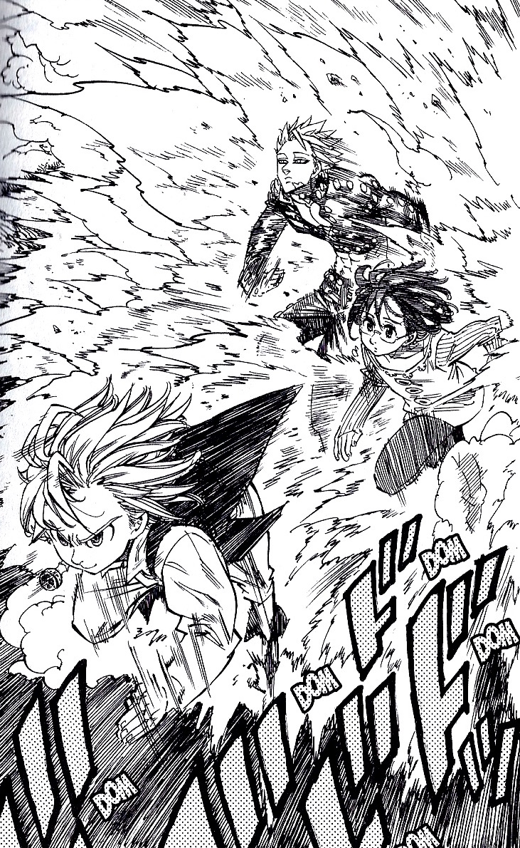 Pour revenir à nos persos, l’introduction du trépidant Gowther est une véritable réussite tant ce personnage parait à la fois improbable et antisocial. Enfin, « antisocial » mais avec la volonté d’avoir des amis : ce qui crée un cocktail à la fois délicieux et drôle au possible (le moment où il fouille les secrets de Ban et co huhu). Même si nous aurons l’occasion de constater, plus tard, qu’il n’y a pas que des cotés positifs à ce manque d’empathie (sociopatheeeeee).