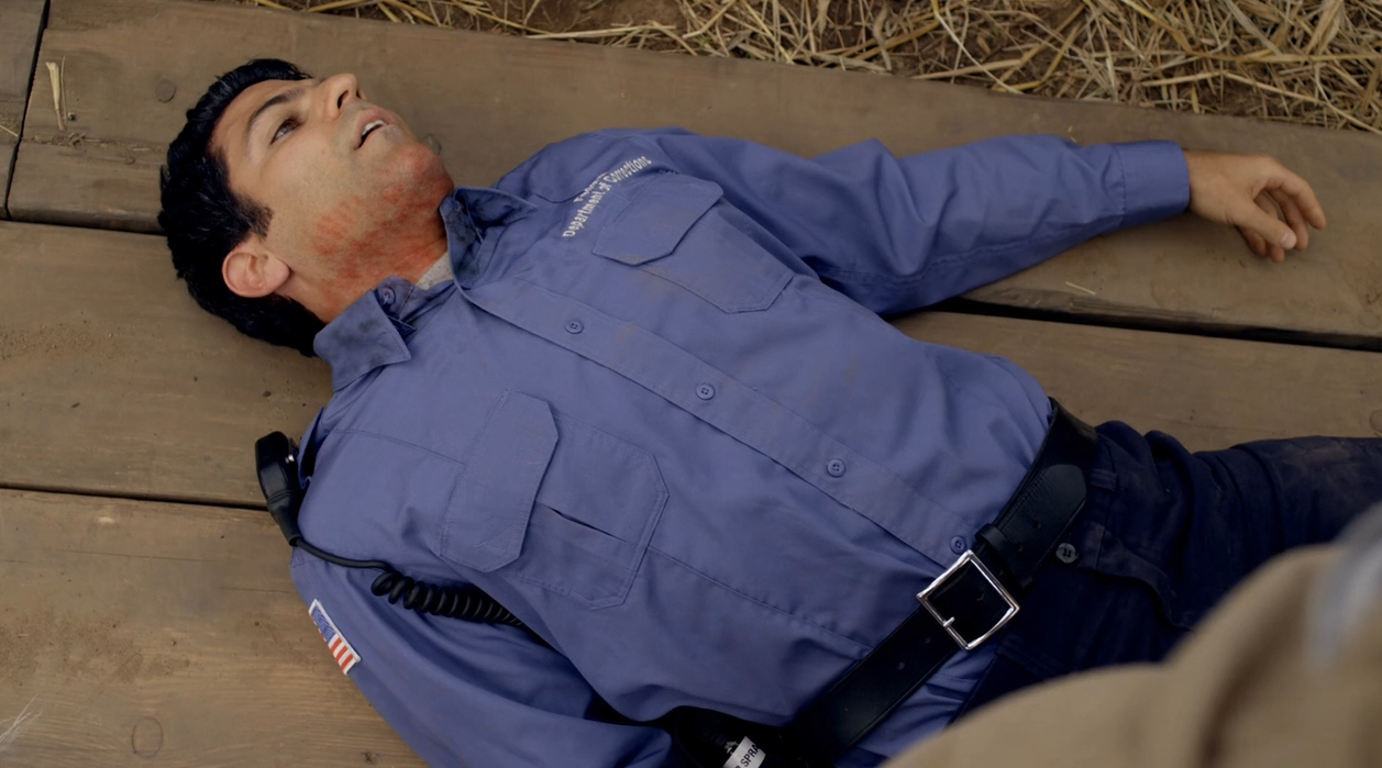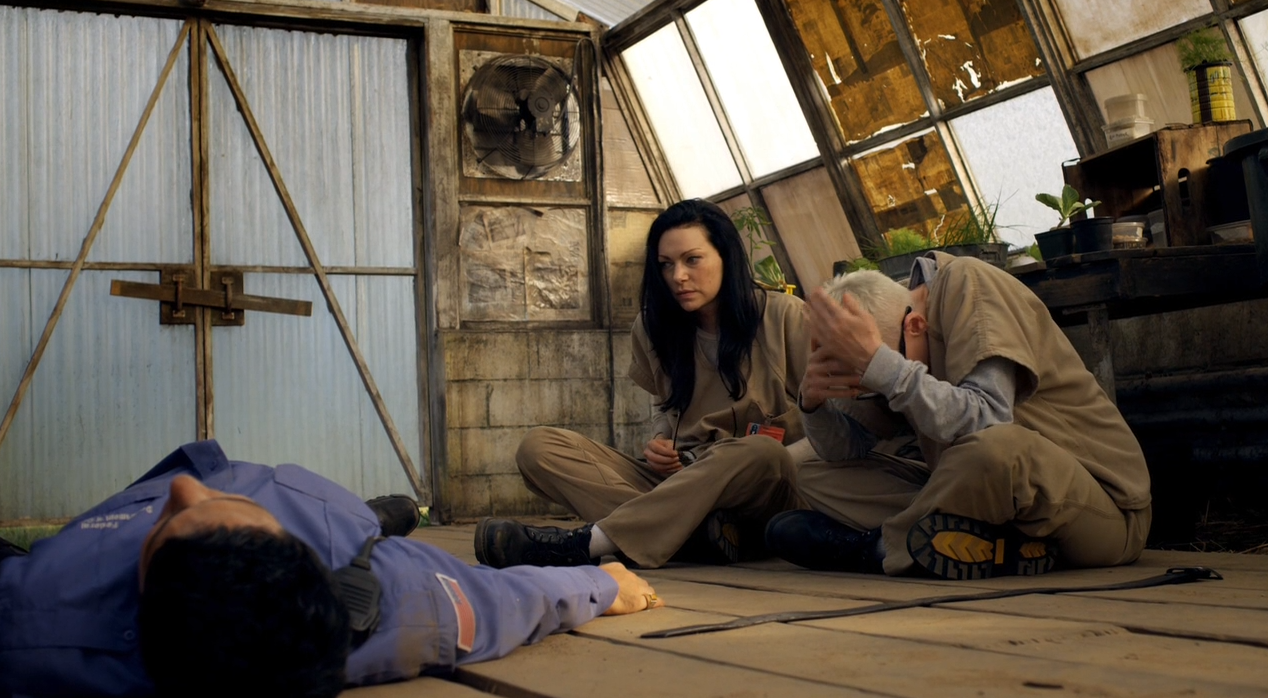 C’est une occasion qui ne se représentera jamais : être libre à l’extérieur de Litchfield le temps d’un après-midi <3 Mais alors que Lolly se précipite vers la brèche ouverte à même le grillage, son attention se porte sur…des cris ?! Comme si une sinistre personne tentait de tuer quelqu’un ._. Et pour cause ! Alex est en train de se faire étrangler par l’un des minions de Kubra, son ancien boss ! Ni une, ni deux, Lolly intervient et tue le dit-minion en lui écrasant la jugulaire à coups de pompes. « Yo ! Tout le monde est en train de se baigner à la plage ! Tu viens ? ». Okay…