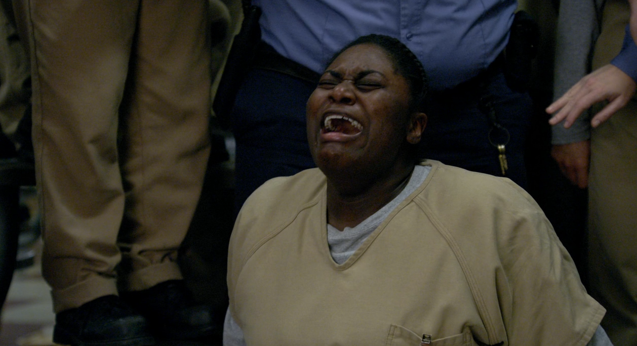 Et c’est là, sans prévenir, que Poussey meurt. Asphyxiée par ce débile de Baxter alors que La Montagne venait d’ordonner l’évacuation du standing (pacifique) et que Suzette commençait à refaire une crise. Et dire que j’avais un mauvais pressentiment. J’aurais aimé avoir tort. J’aurais vraiment aimé avoir tort.