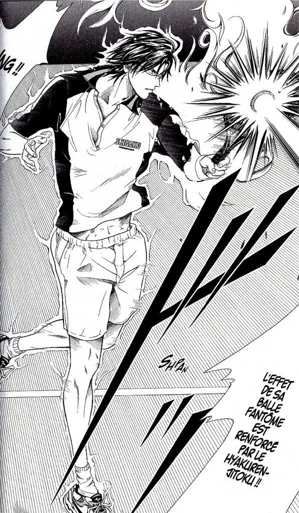 Après un match totalement wtf entre Shintenhôji et Kawamura où ce dernier se faisait éjecter dans les tribunes tellement les coups de raquette de son adversaire étaient puissants, voilà que l’auteur Takeshi Konomi récidive en surpassant les frontières de l’absurde.