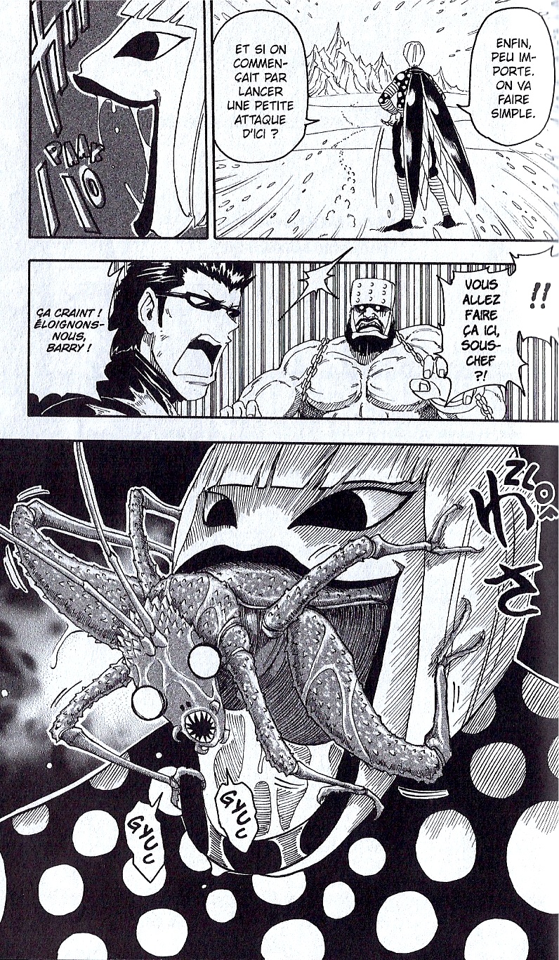 Mais c’est surtout coté méchants qu’on nous annonce du lourd avec ce fameux Tommyrod renfermant nombre d’insectes redoutables à même son corps (brr). Sadique et psychopathe pour un rien, celui-ci s’annonce comme un adversaire de poids pour Toriko. Enfin, le lever du voile sur le mystérieux gars aux cheveux roses est aussi inattendu qu’appréciable tandis que le coté humour reste assuré avec les pérégrinations de Zonge et sa bande de guignols. Nothing to say donc.