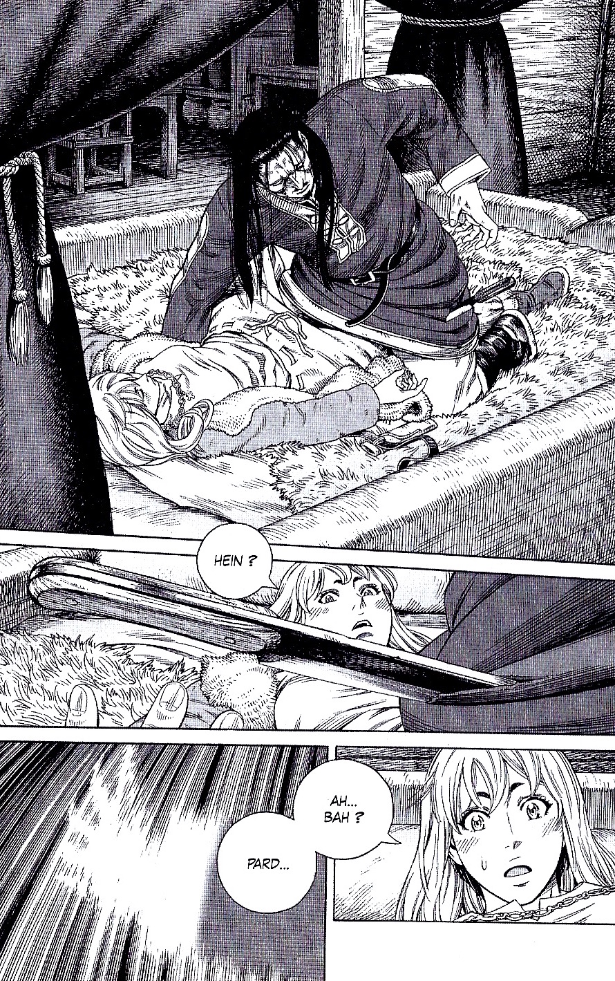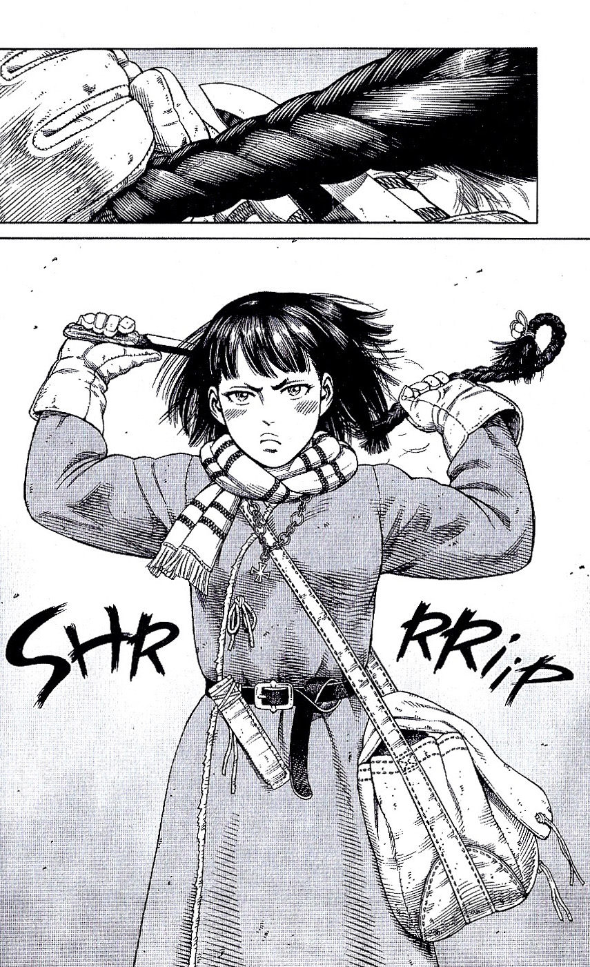 Lentement mais surement, le deuxième arc de la deuxième saison de Vinland prend forme. Et si je dois admettre avoir été peu emballé par certains des nouveaux personnages, à commencer par le seigneur Halfdan « Chaîne de Fer » et son imbécile de fils Sigurd, il n’en est pas du tout de même pour l’intrépide et courageuse Gudrid <3 Une vraie Mulan Viking :3 Car figurez-vous que Gudrid veut devenir marine depuis toute petite et n’en démord pas le moins du monde.