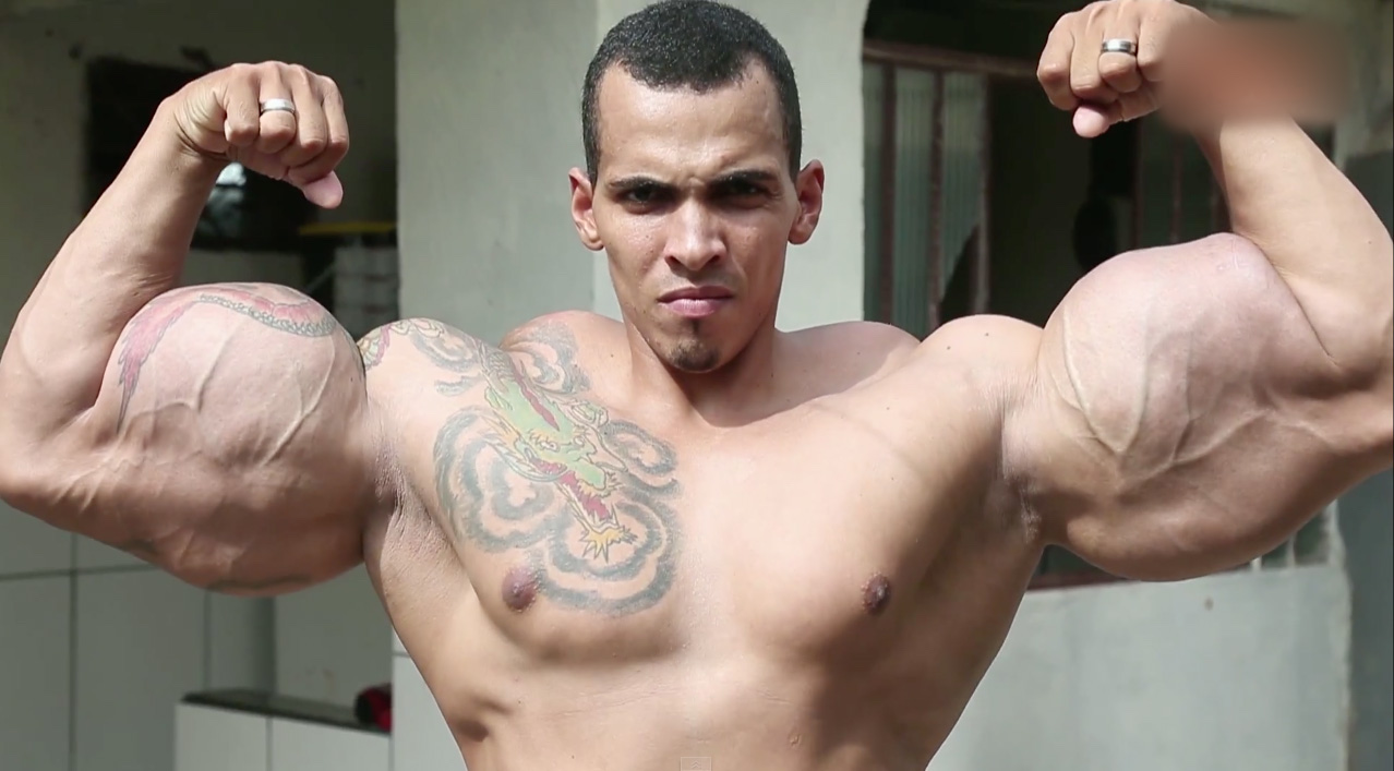 De constitution plutôt chétive, Romario Dos Santos ne supportait plus son corps et a, un jour, décidé de s’injecter les muscles avec une substance appelée « Synthol ». Composition : des huiles, de l’alcool et de la lidocaïne (un anesthésique local). Seulement, après avoir gonflé comme un ballon d’hélium, Romario a réalisé que les injections n’amenaient plus de résultats et a donc eu la brillante idée d’acheter des seringues spécialement conçues pour les taureaux. En plus d’ajouter à son cocktail des hormones de chevaux.