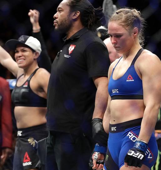 Cette violence (•︵•) J’avais déjà été choqué par sa toute première défaite le 15 novembre 2015 face à Holly Holm… Mais j’étais persuadée qu’elle parviendrait à se reprendre et à signer un retour flamboyant (-‸ლ) Un an plus tard, force est de constater que ce n’est pas le cas. À peine 48 secondes après le premier round, son adversaire, la Brésilienne Amanda Nunes, décroche la victoire. Après avoir fait pleuvoir une avalanche de coups sur une Ronda Rousey totalement impuissante. C’est dingue de voir à quel point une championne peut être destituée de son aura d’invincibilité en deux défaites consécutives. Aujourd’hui, Amanda Nunes, 28 ans et championne des poids coq de l’UFC (Ligue Américaine), était trop forte.