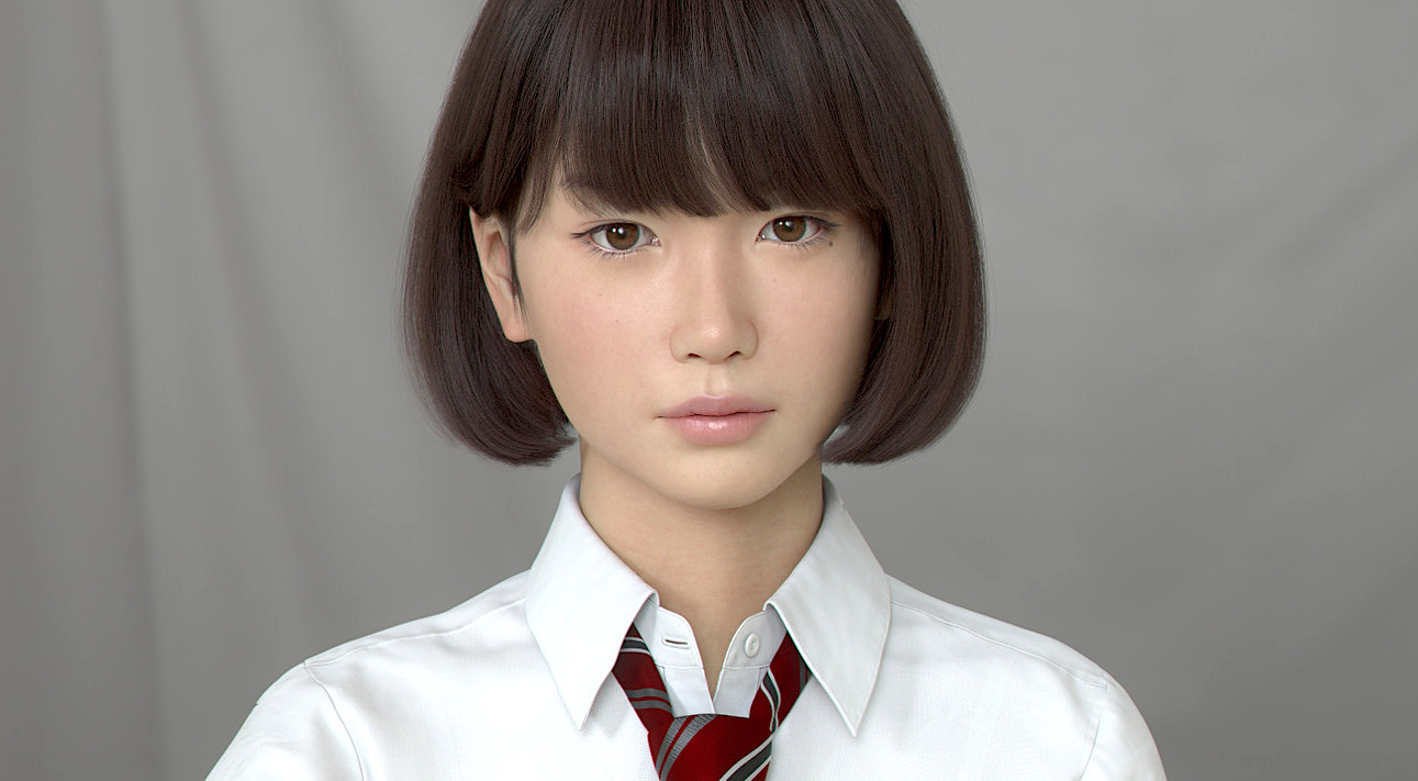 Seulement 9 secondes ?! C’est trop peu T_T Quand bien cela permet de se faire un avis quant à l’état d’avancement du photoréalisme 3D ! Autant les photos de Saya peuvent tromper les yeux peu aguerris, autant la vidéo permet d’affirmer avec certitude son caractère non-humain ^^ Et pourtant… Nous n’en sommes plus très loin ! Autant l’animation des vêtements a du chemin à parcourir avant d’être 100% crédible, autant la texture de la peau et des cheveux de Saya sont impressionnants de réalisme O_O À noter que ce que vous voyez ci-dessus est diffusé sur un écran 8K ! Et pour avoir vu une télé géante 4K à l’oeuvre, je peux vous certifier qu’il faut le voir pour le croire ! Les images semblaient être en relief tant le niveau de détail était élevé !!