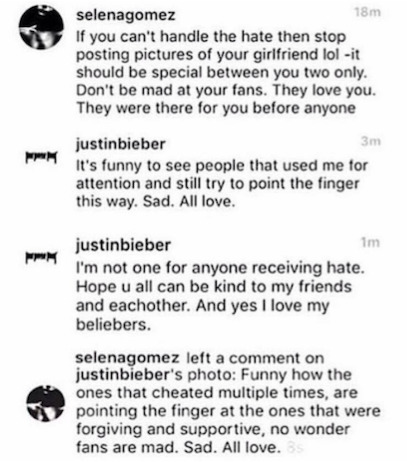 Il n’aurait tellement pas dû répondre… Pour un récapitulatif du Selena Ending Justin Party, cliquez-ici ! L’affaire aurait pu en rester là avec un Justin brisé mais potentiellement capable de rectifier son mauvais comportement suite à cette remise en question via miss Selena. Mais non, l’imbécile a voulu répondre de la PIRE manière qui soit. Non seulement Justin rejette l’appel à l’apaisement de son ex mais l’accuse de l’avoir utilisé du temps où ils étaient ensemble. À savoir s’être mise en couple avec lui juste histoire d’être davantage célèbre O_O LOL WUT ? Il a eu une crise d’amnésie le Bieber ou ça se passe comment ? Tant mieux ! Ma reine s’est chargée de lui rafraichir la mémoire et pas qu’un peu !