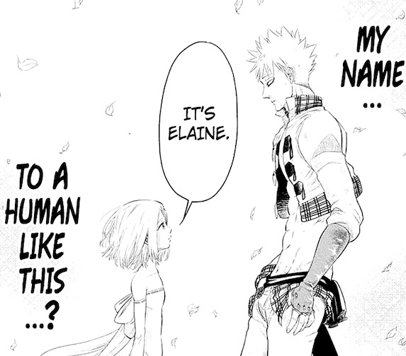 Toujours sympa ce spin-off de Nanatsu ^^ Même si le rythme s’est ralenti sur ce deuxième chapitre ! En même temps, j’imagine que Mamoru Iwasa a prévu de publier 7 chapitres histoire d’être raccord avec le titre Seven Days ! Autant dire que Ban et Elaine vont vite tomber amoureux l’un de l’autre ! Alors que nous parlons d’un jeune homme de 23 ans et d’une fille de 700 ans ayant l’apparence d’un enfant xD Yep ! C’est un peu lolicon tout ça !! Pour rappel, le lolicon désigne l’attirance sexuelle d’une personne majeure envers une personne mineure <_< Généralement âgée entre 10 et 14 ans ._. J’entends bien que l’auteur original, Nakaba Suzuki, entend montrer l’universalité de l’amour à travers le couple Ban X Elaine mais ça reste bizarre xD Pour autant, Elaine a 700 ans et Ban en a à l’‘époque 23… Tous les deux ont donc leur majorité sexuelle !