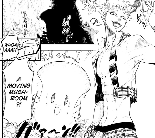 Un chapitre intermédiaire de Seven Days… Hm, pourquoi pas ! Je prends ^o^ D’autant plus que ces 8 pages nous permettent de nous attacher davantage au couple Elaine X Ban. Histoire de mieux souffrir lorsque l’inévitable drama arrivera T_T Au passage, il faudrait que le studio d’animation 1-A Pictures se motive à adapter Seven Days en anime ! Ça permettrait de patienter jusqu’à la saison 2 qui se fait attendre -_- Pour rappel, nous avons eu une saison 1 de 24 épisodes de octobre 2014 à mars 2015 puis une série de 4 OAV de août à septembre 2016. Peut-être que la S02 débarquera d’ici la fin de l’année ! Ou 2018 u_u Bref, parlons peu, parlons bien —> Qu’est-ce que c’est que ces petits champignons tout mignons qui parlent ?! *o*