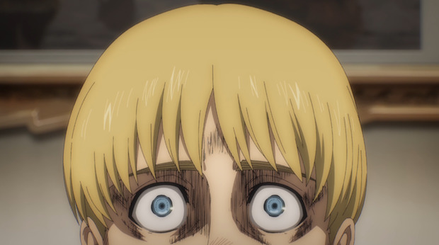 Eren a vraiment changé… Jamais il n’aurait eu auparavant de tels propos à l’encontre de Mikasa et Armin. Une partie de moi aimerait que cela ne soit qu’un acte désespéré en vue de jouer les grands méchants et catalyser la haine de ses amie(e)s sur lui mais ça va au-delà de ça. Vu la réaction d’Eren lorsque Armin lui dit que c’est lui qui a atteint les bassesses de l’esclavage, la colère qu’il a déversé sur eux n’était pas totalement feinte. J’imagine que sa haine envers la masse informe qu’il considère comme « l’ennemi » est telle qu’il commence à la voir partout. Une paranoïa singulièrement dangereuse vu les crimes dont Eren est d’ores et déjà responsable. Enfin ! Mis à part cela, la fronde dramatique de Levi à l’encontre ses subordonn(é)s fut éprouvante. On regrettera à nouveau le manque de moyens de Mappa en rêvant de ce qu’il en aurait été si toutes les étoiles avaient été alignées pour ce combat important de SnK. Il n’empêche —> Levi reste Levi et la grimace du singe n’a eu aucune emprise sur lui. Pas même une seconde. Allez, la suite ! Ça m’a fait de la peine de voir Keith Sadies, le sergent-instructeur légendaire, ainsi mis à tabac ! Je suis certain qu’il a fait exprès de provoquer ses recrues histoires qu’elles se fassent bien voir de Floch le fanatique.