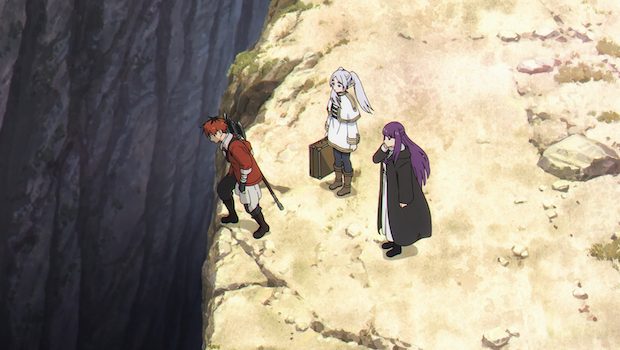 « Pour être profond, c’est profond » réalise Stark en contemplant l’abysse du Canyon du Grand Tor. « 3.000 mètres de profondeur » précise Frieren. « C’est le plus profond canyon du continent ». L’élévation du Plateau Nordique explique cela. « Comment on va faire pour le traverser ? » demande le guerrier. « Si on remonte sur le sens du courant, on devrait pouvoir traverser la rivière ». Quand bien même cela implique de devoir traverser des reliefs montagneux particulièrement sinueux. « On pourrait pas aller dans le sens inverse ? » s’interroge Fern. « Une falaise de plus de 3.000 mètre fait face à la mer donc non ». Une très belle vue, mais, hélas, impossible d’aller au-delà. Sur ce, c’est parti pour un trajet de deux semaines de marche. « C’est pas comme si on avait le choix » se résigne Stark. « Hm… » s’interroge Frieren. « On devrait l’apercevoir assez vite ». « Comment ça ? » demande Fern. « Pour l’instant, contentons-nous de remonter le courant ». […] « Un pont ? » s’étonne Stark. Oui. Construit par un certain Gehen. « Je vois que tu y es parvenu » sourit Frieren alors qu’elle et sa troupe rejoignent le charpentier assis sur un banc. « Yup ».