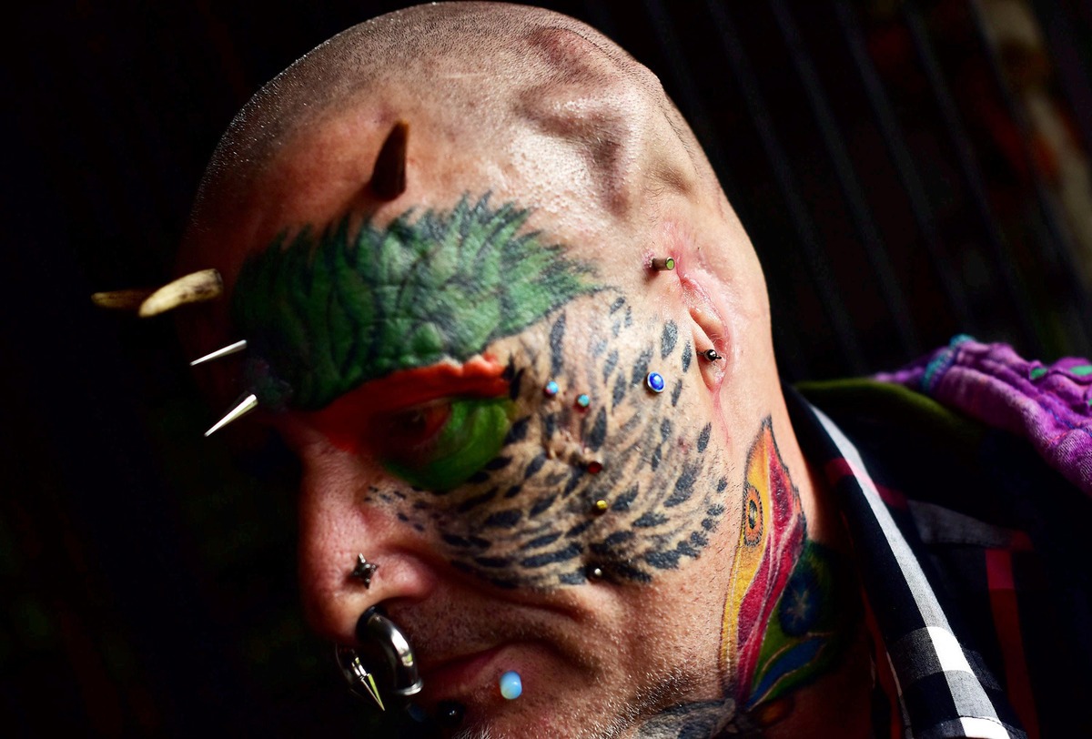 Il se fait appeler le « Parrot Man » ou « Homme Perroquet » u_u Cela étant dit, je ne suis pas surpris vu que ce n’est pas la première fois qu’on entend parler de personnes mutilant leurs corps pour ressembler à des animaux. De mémoire, je repense à Dennis Avener aka « L’Homme Félin » qui s’était fait tatouer, percer, et reconstruire son visage (nez aplati, lobes des oreilles amputés, injection de silicone dans le front, etc) afin de ressembler à un tigre. Coût de l’opération : 150.000 €. Il avait fini par se suicider en novembre 2012 <_<‘