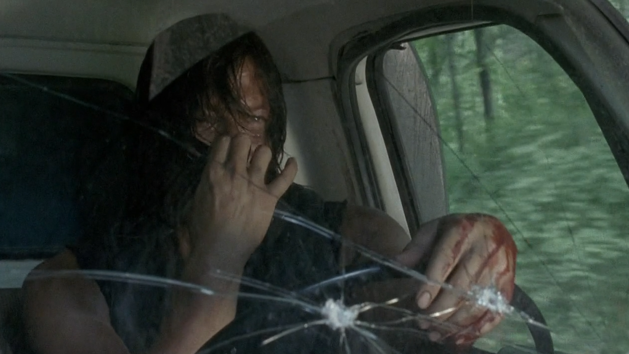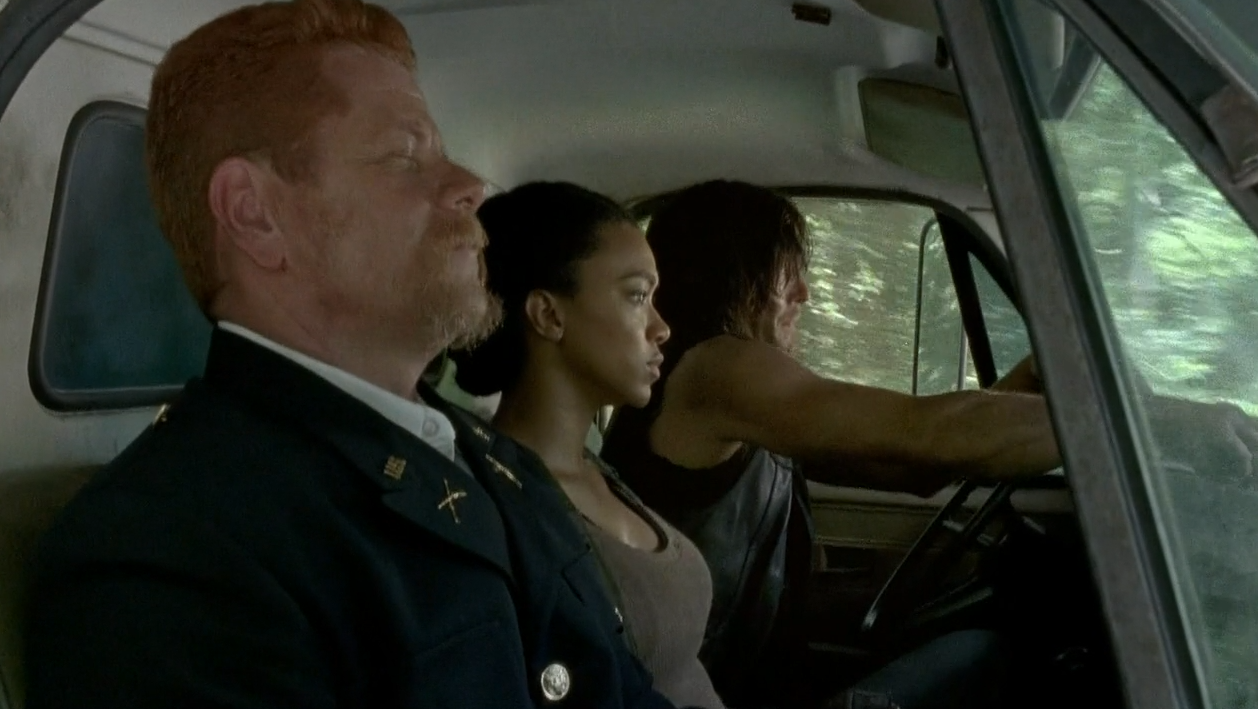 Pour être tout à fait sincère, je n’avais pas du tout pensé à cette hypothèse. Ce n’est qu’après m’être repassé la scène que j’ai commencé à avoir le doute ._. À savoir cette fin de l’épisode 06 où Daryl rejoint Abraham et Sasha avant de faire route pour Alexandria. Et alors que Daryl active son talkie-walkie afin d’établir la communication avec Rick, une voix se fait entendre. Une voix qui implore « À l’aide ».