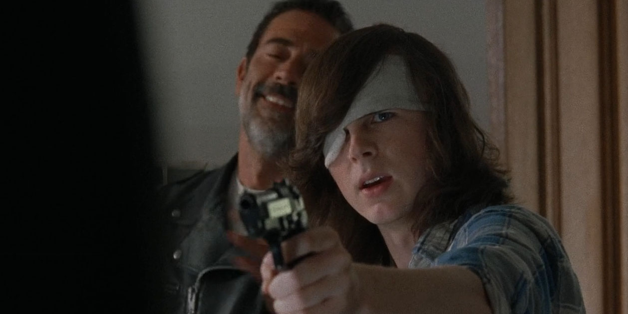 Ha, Negan… Ce mec est d’un sadisme. Avec ses vannes à deux balles -_- Et son despotisme de mes ******** ! « Gnagna tu parles pas à Daryl gnagna ». Mais ferme-là… Et Dwight est-il obligé de faire l’enfoiré toutes les deux secondes ? Il fait vraiment tout pour qu’on le déteste alors qu’on commençait à avoir un brin d’empathie pour lui à l’épisode dernier -_- Anyway ! Je ne crois pas une seule seconde à la mort de Maggie off-screen ! Elle doit être aux Hilltops avec Sasha ou quelque chose de ce genre ! Mais mourir ? Juste après Glenn ? No ******* way !! Sur ces entrefaites, on en parle de la badasserie de Carl ? Dire que je détestais ce petit au départ <3 Il en est tout autre désormais ! Carl fait partie de mon top 5 devant Maggie et derrière Rick, Michonne et Daryl \^o^/