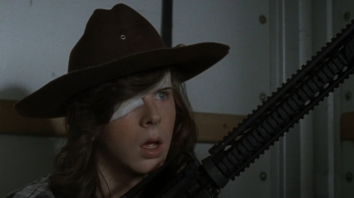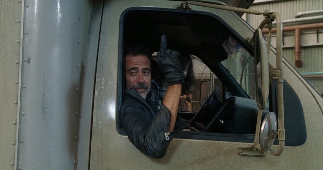 Mais à quoi pensait Carl ??? O_O Tenter de tuer Negan en plein camp des Saviors ? Damn, boy !! Et maintenant qu’il s’est fait capturer, il va falloir payer le prix… Quand bien même Negan est résolu à lui offrir un « Tour des lieux »… Histoire de lui montrer que ses hommes le vénèrent comme un Dieu. Histoire de lui montrer le nombre de ses « femmes ». Dont Sheryl, l’ex-copine de Dwight u_u Ce moment awkward où il débarque pendant que Negan lui roule un patin u_u What the **** is this place ? Bref… Carl s’en tire à bon compte avec sa chanson à oeil ouvert. Un petit trauma, certes, mais ça aurait pu être tellement pire… J’ai l’impression que Negan rechigne à tuer les personnes qu’il prend « en affection ».