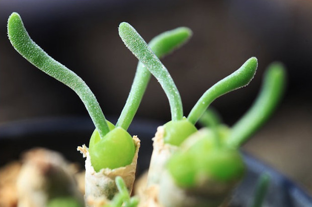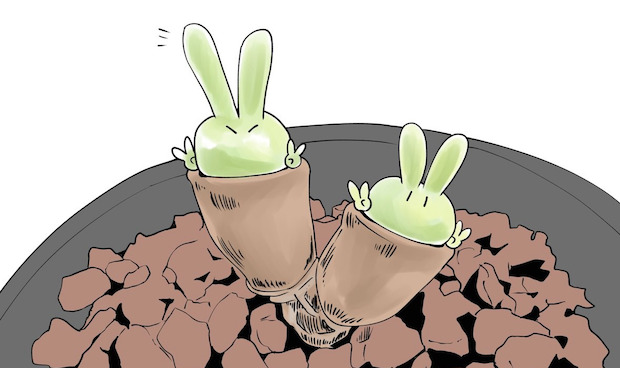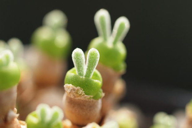 Mooo <3 Je ne tombe pas souvent amoureux de plantes mais quand ça arrive, c’est parce qu’elles sont mignonnes comme tout \^o^/ Ce qui est indubitablement le cas de ces Usagi Puranto (ou Plantes Lapin) !! Soit de toutes petites plantes qui, lorsqu’elles germent, se voient dotées de deux antennes vertes faisant penser à des oreilles de lapin xD Provenant d’Afrique du Sud (Monilaria Obconica), les Usagi Puranto n’ont pas tardé à connaitre un gros succès au Japon ! Du fait de leur apparence kawaii *_* Il a suffit qu’un internaute poste des photos sur Twitter (beaucoup utilisé sur l’archipel) pour qu’une fièvre acheteuse se déclenche un peu partout sur l’archipel ! Buzz mérité ! C’est dingue qu’une telle plante existe… On dirait vraiment des petits lapins !!