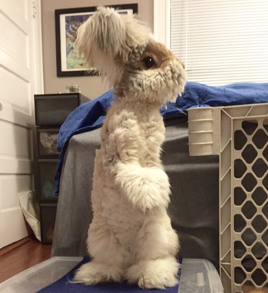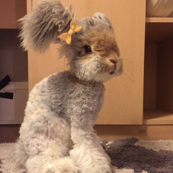 Ces oreilles en forme d’ailes d’ange <3 Appartenant à l’espèce des lapins Angora (réputés pour avoir une fourrure hyper douce et soyeuse), Wally, 1 an, a cette particularité d’avoir des ailes « extravaganza » (-‸ლ) À savoir que sa propriétaire s’est arrangée pour lui faire la coupe la plus inspirée et la plus démente qui soit. Un peu comme Boo le Chien :3 Résultat : Wally le Lapin Chérubin est une Star de l’Internet comptant plus de 40.000 abonnés sur son compte Instagram.