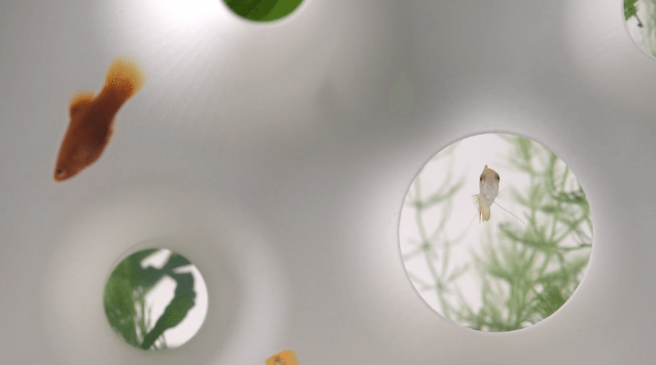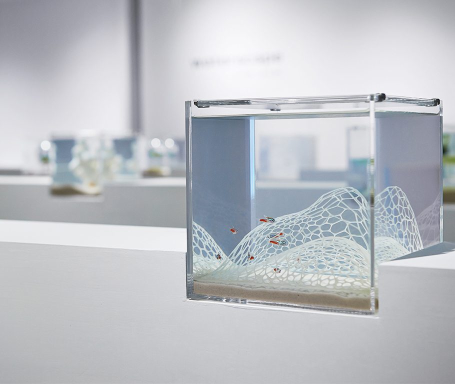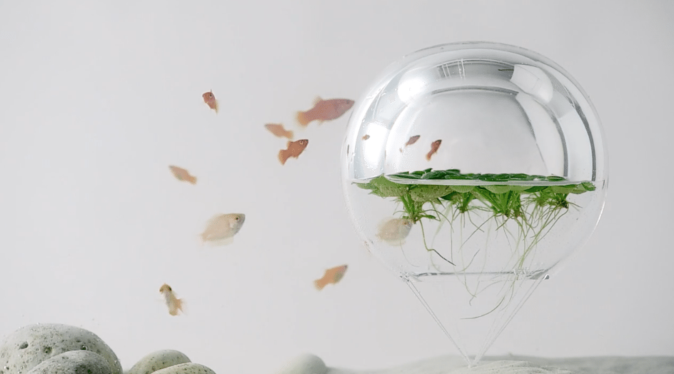 Notamment, Haruki s’est inspiré du principe de flottabilité afin de créer une bullee d’air à l’intérieur de l’espace aqueux. Objectif : pourvoir les poissons avec de la végétation et un stock de nourriture interne. De même, l’ensemble des formes qui habitent l’espace ont été pensés dans une optique de « voyage spirituel ». Vous conviendrez qu’on est loin de l’aquarium basique ! Sans compter cette prison ronde qu’est le bocal <_< Si ça ne tenait qu’à moi, j’aurais interdit ces choses-là depuis un bail… Anyway, ça m’a motivé à repenser l’aquarium de ma tortue d’eau Slymer \^o^/ Huhuhu.