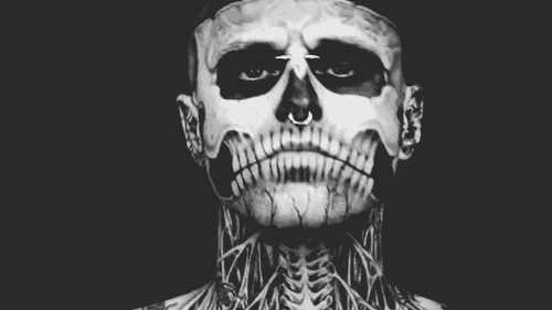 Participant désormais à plusieurs spectacles et différents projets artistiques, Rick Genest est d’ores et déjà devenue une icône de la culture Punk/Rock et, dans un sens plus large, de la sphère « Tattoo » et « Body Art ». Moi-même, n’étant pas DU TOUT dans le trip « Tatouages » (mais pas du tout du tout), je dois bien admettre être impressionné par la force de caractère et le magnétisme de ce Zombie Boy. Pas étonnant que toutes les meufs veuillent le…