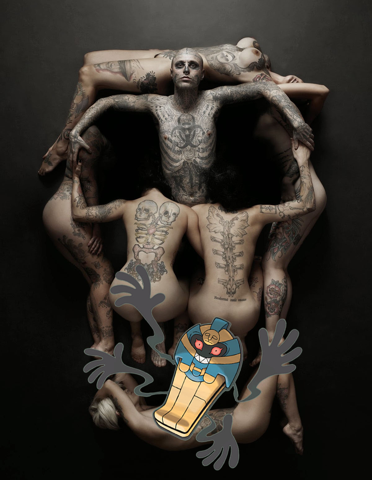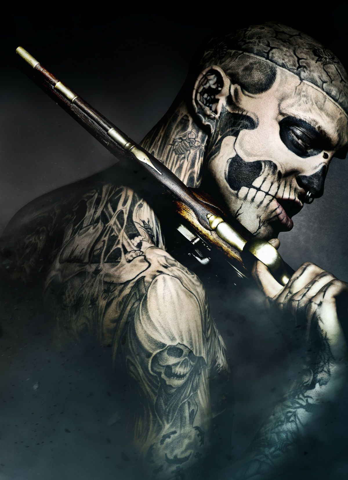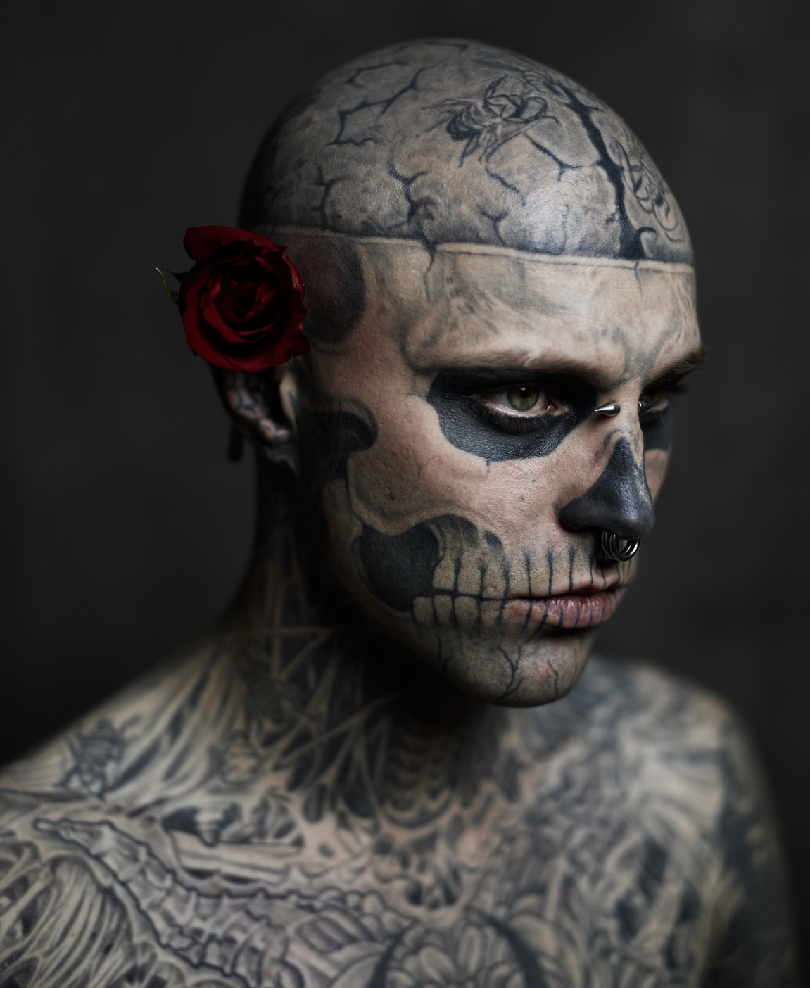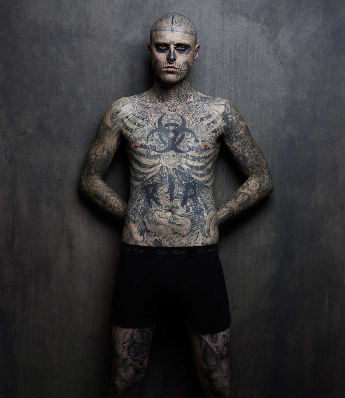 Au départ, personne ne comprenait son choix (y compris son tatoueur attitré Franck Lewis) de se faire tatouer sur l’intégralité du corps. Mais Rick a insisté et, convaincu d’intégrer son corps à une sorte de « culture personnelle », s’est fait tatoué les yeux + le nez, avant de revenir vers Lewis. Ce n’est qu’ensuite que ce dernier a accepté de lui tatouer le fameux visage du « Zombie Boy ».